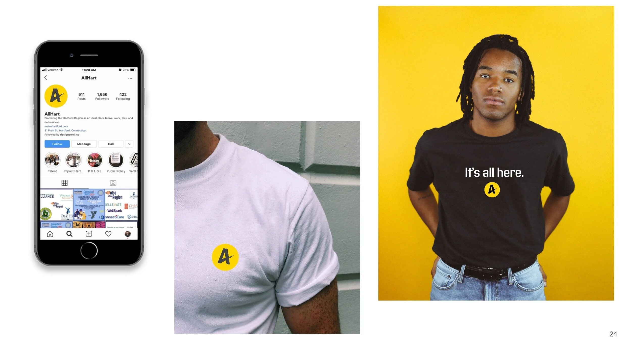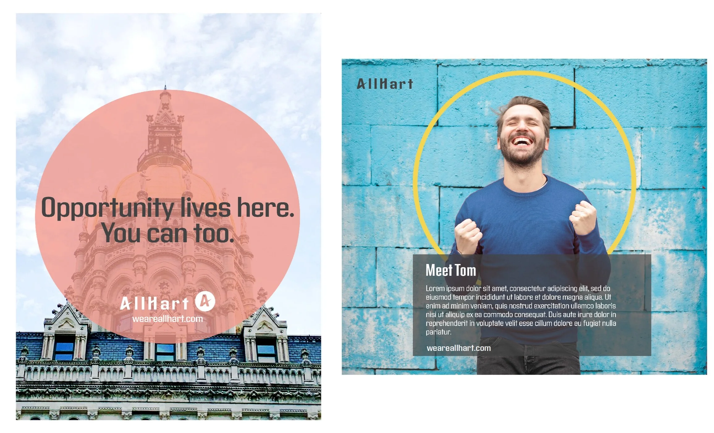 The resulting brand, AllHart, does just that. The double meaning of the name speaks to their group’s dedication to helping young people navigate all Hartford has to offer while showcasing the best of the region beyond the city. Through modern typography, energetic colors, and confident messaging, the AllHart brand gives the Alliance a perfect way to showcase how the region’s lifestyles, cultures, and people make it a place full of promise and new opportunities.